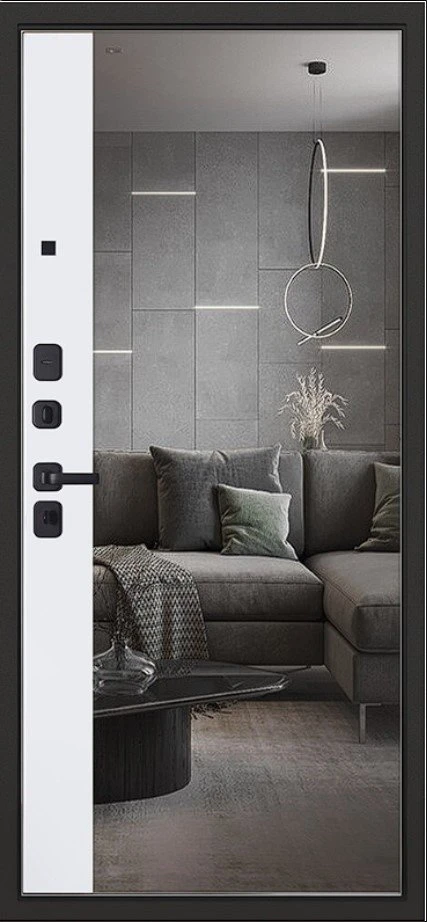Надежная входная Дверь Scandi с зеркалом премиум класса по цене 44 783 руб. Большая толщина стали защитит от проникновения в ваш дом, квартиру или коттедж. Используется очень качественная фурнитура: замки, цилиндры, ручки, защелки. Покрытие и отделка двери изготовлено под внимательным контролем производителя. Дверь имеет долгий срок службы и гарантию.