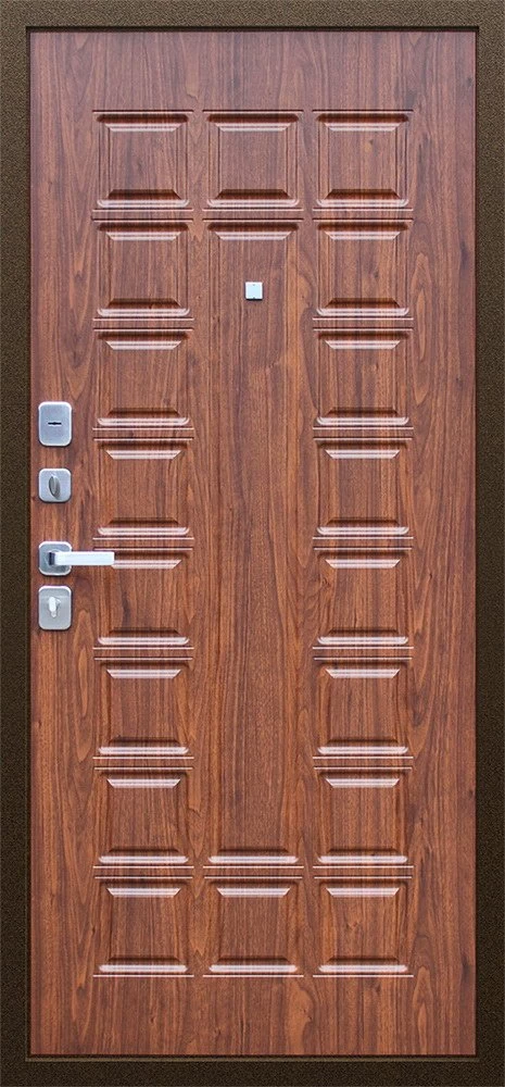 Надежная входная Дверь Спартак Орех темный премиум класса по цене 33 683 руб. Большая толщина стали защитит от проникновения в ваш дом, квартиру или коттедж. Используется очень качественная фурнитура: замки, цилиндры, ручки, защелки. Покрытие и отделка двери изготовлено под внимательным контролем производителя. Дверь имеет долгий срок службы и гарантию.