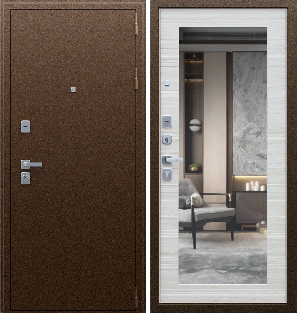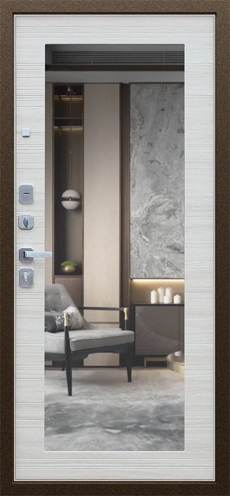 Надежная входная Дверь Спартак с зеркалом Акация Светлая Поперечная премиум класса по цене 35 983 руб. Большая толщина стали защитит от проникновения в ваш дом, квартиру или коттедж. Используется очень качественная фурнитура: замки, цилиндры, ручки, защелки. Покрытие и отделка двери изготовлено под внимательным контролем производителя. Дверь имеет долгий срок службы и гарантию.