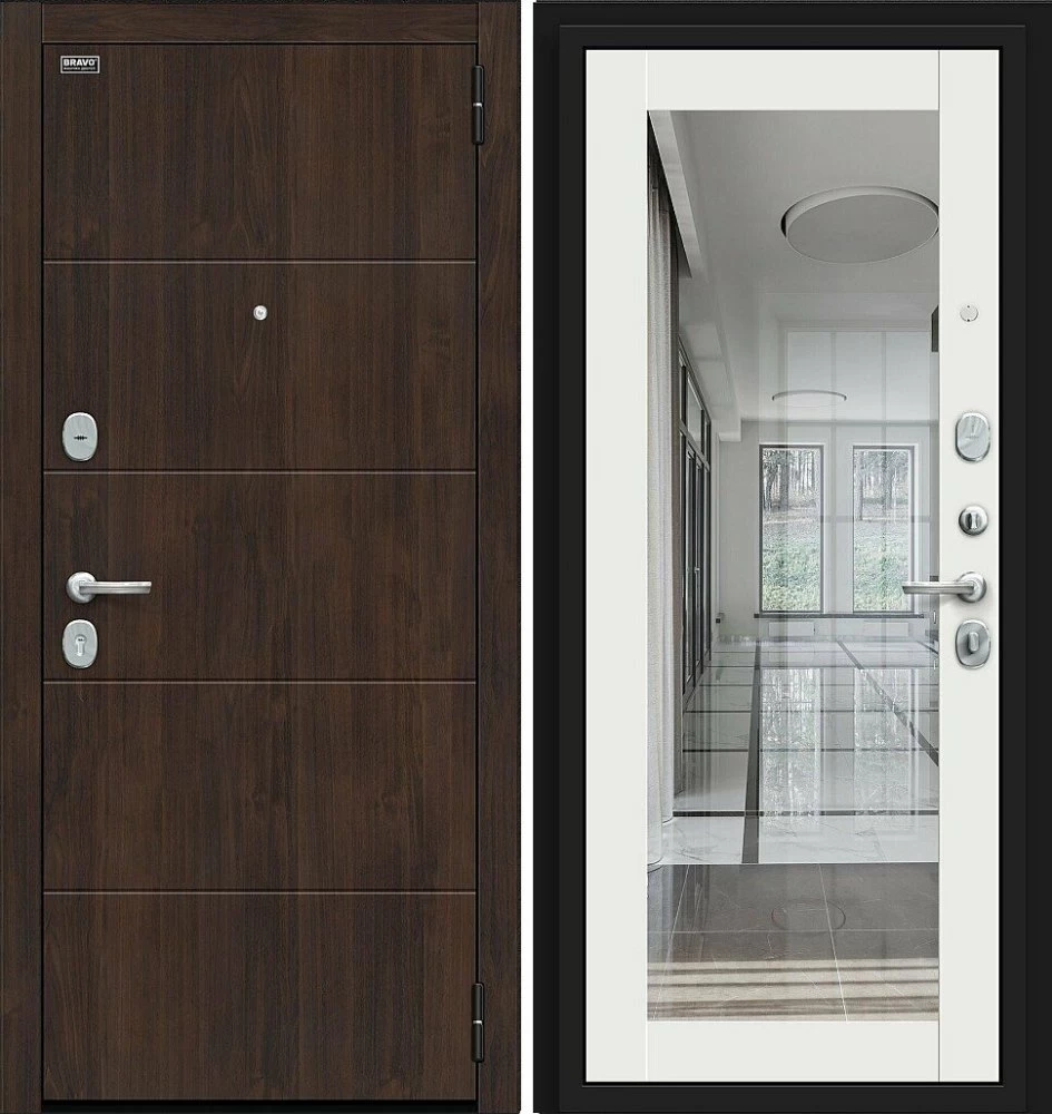 Надежная входная Дверь Браво Флэт Kale Almon/Off-white премиум класса по цене 41 283 руб. Большая толщина стали защитит от проникновения в ваш дом, квартиру или коттедж. Используется очень качественная фурнитура: замки, цилиндры, ручки, защелки. Покрытие и отделка двери изготовлено под внимательным контролем производителя. Дверь имеет долгий срок службы и гарантию.