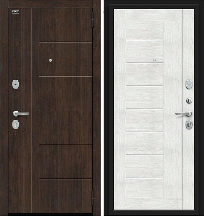 Надежная входная Дверь Браво Модерн Kale Almon/Bianco Veralinga премиум класса по цене 38 683 руб. Большая толщина стали защитит от проникновения в ваш дом, квартиру или коттедж. Используется очень качественная фурнитура: замки, цилиндры, ручки, защелки. Покрытие и отделка двери изготовлено под внимательным контролем производителя. Дверь имеет долгий срок службы и гарантию.