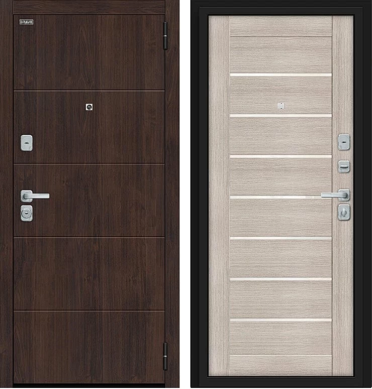 Надежная входная Дверь Браво Прайм/BChrome Almon/Cappuccino Melinga премиум класса по цене 39 333 руб. Большая толщина стали защитит от проникновения в ваш дом, квартиру или коттедж. Используется очень качественная фурнитура: замки, цилиндры, ручки, защелки. Покрытие и отделка двери изготовлено под внимательным контролем производителя. Дверь имеет долгий срок службы и гарантию.
