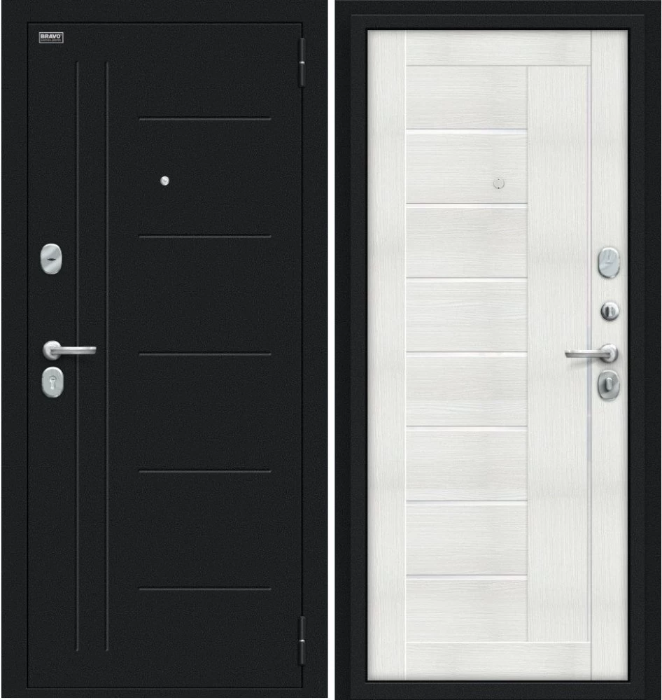 Надежная входная Дверь Браво Проф Букле черное/Bianco Veralinga премиум класса по цене 32 433 руб. Большая толщина стали защитит от проникновения в ваш дом, квартиру или коттедж. Используется очень качественная фурнитура: замки, цилиндры, ручки, защелки. Покрытие и отделка двери изготовлено под внимательным контролем производителя. Дверь имеет долгий срок службы и гарантию.