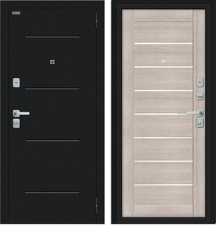 Надежная входная Дверь Браво Техно/BChrome Букле черное/Cappuccino Melinga премиум класса по цене 32 583 руб. Большая толщина стали защитит от проникновения в ваш дом, квартиру или коттедж. Используется очень качественная фурнитура: замки, цилиндры, ручки, защелки. Покрытие и отделка двери изготовлено под внимательным контролем производителя. Дверь имеет долгий срок службы и гарантию.
