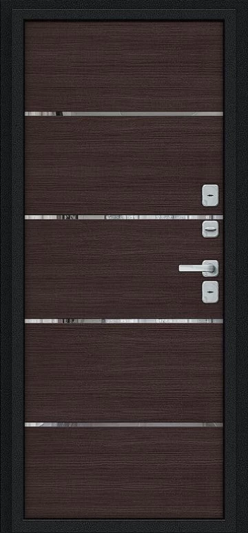 Надежная входная Дверь Браво Thermo Лайн/BChrome Букле черное/Wenge Melinga премиум класса по цене 45 733 руб. Большая толщина стали защитит от проникновения в ваш дом, квартиру или коттедж. Используется очень качественная фурнитура: замки, цилиндры, ручки, защелки. Покрытие и отделка двери изготовлено под внимательным контролем производителя. Дверь имеет долгий срок службы и гарантию.