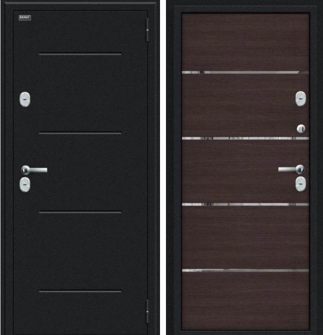 Надежная входная Дверь Браво Thermo Лайн Букле черное/Wenge Veralinga премиум класса по цене 47 333 руб. Большая толщина стали защитит от проникновения в ваш дом, квартиру или коттедж. Используется очень качественная фурнитура: замки, цилиндры, ручки, защелки. Покрытие и отделка двери изготовлено под внимательным контролем производителя. Дверь имеет долгий срок службы и гарантию.