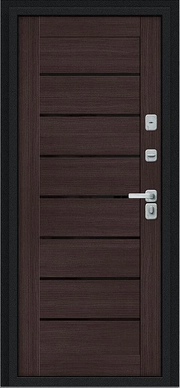 Дизайнерская входная Дверь Браво Thermo Техно Д2/BChrome Букле черное/Wenge Melinga класса Люкс с несколькими листами стали, звукоизоляцией и теплоизоляцией. Утепленный короб и полотно защитят от сквозняков и шумов. Модель не только надежная, комфортная, защищенная и высочайшего качества, но и очень красивая! Будет отлично сочетаться с интерьером дома, квартиры или офиса. Сейчас действует выгодное предложение по цене: 56 133 руб.