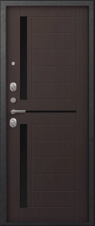 Надежная входная Дверь A-01 черный сатин - лиственница тёмная премиум класса по цене 30 633 руб. Большая толщина стали защитит от проникновения в ваш дом, квартиру или коттедж. Используется очень качественная фурнитура: замки, цилиндры, ручки, защелки. Покрытие и отделка двери изготовлено под внимательным контролем производителя. Дверь имеет долгий срок службы и гарантию.