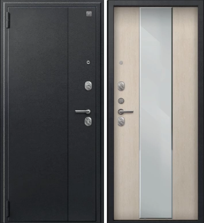Надежная входная Дверь A-04 черный сатин - седой дуб зеркало премиум класса по цене 33 583 руб. Большая толщина стали защитит от проникновения в ваш дом, квартиру или коттедж. Используется очень качественная фурнитура: замки, цилиндры, ручки, защелки. Покрытие и отделка двери изготовлено под внимательным контролем производителя. Дверь имеет долгий срок службы и гарантию.