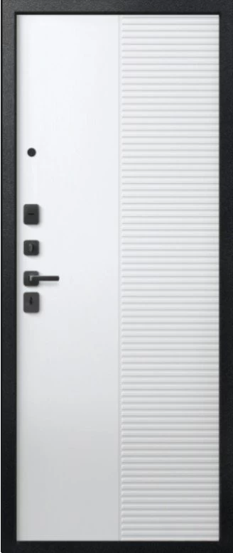Надежная входная Дверь V-18 Черный муар + Кашемир графит - Кашемир Белый премиум класса по цене 46 233 руб. Большая толщина стали защитит от проникновения в ваш дом, квартиру или коттедж. Используется очень качественная фурнитура: замки, цилиндры, ручки, защелки. Покрытие и отделка двери изготовлено под внимательным контролем производителя. Дверь имеет долгий срок службы и гарантию.